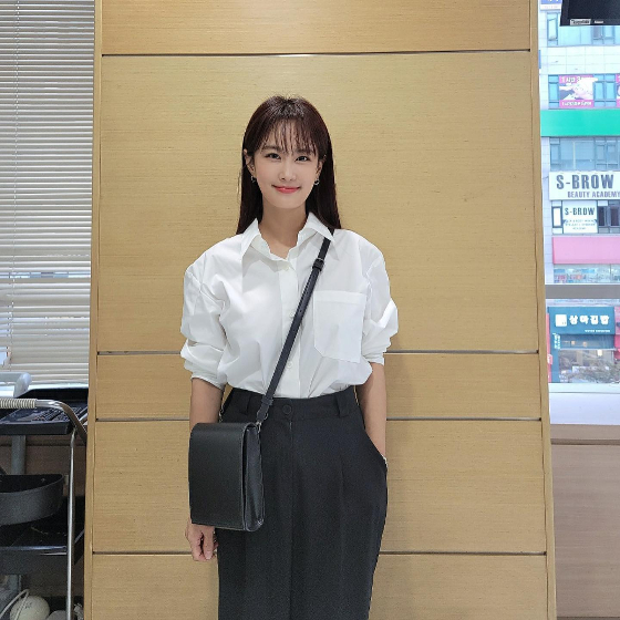 김지민은 16일 자신의 인스타그램에 "코디가 이쁘면 녹화도 즐겁다"라는 글과 두 장의 사진을 게재했다.
