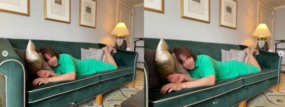 공개된 사진에는 장근석이 초록색 반팔 티와 초록색 반바지를 입고 초록색 소파 위에 누워 눈을 감고 있는 모습이 담겼다. 또 다른 사진에는 장근석이 같은 동작으로 미소를 지으며 카메라를 쳐다보고 있다.