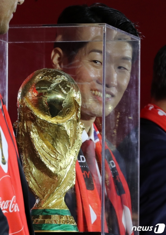 두 한국 축구 레전드 차범근과 박지성이 직접 천막을 걷어내는 것으로 월드컵 트로피가 공개됐다. 이후 히바우두는 벤투 감독과 이용수 부회장에게 FIFA 오리지널 트로피를 본 따 만든 월드컵 트로피 레플리카를 선물했다.