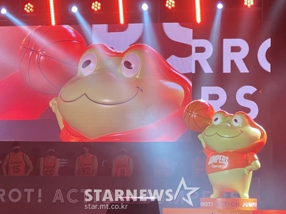 새로 출범한 고양 캐롯 점퍼스 농구단의 새 마스코트 '대길이'. 프로구단에서 보기 드문 개구리를 모티브로 한 마스코트에 다양한 반응이 나왔다.