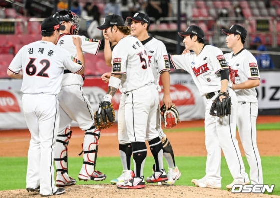 그리고 4회 빅이닝을 만들어냈다. 황재균, 김준태의 연속 안타와 상대 실책을 묶어 만루 기회를 잡았다. 심우준 희생플라이, 배정대의 2타점 2루타, 강백호 희생플라이를 묶어 4점을 뽑았다. 사실상 승부에 쐐기를 박는 득점이었다.