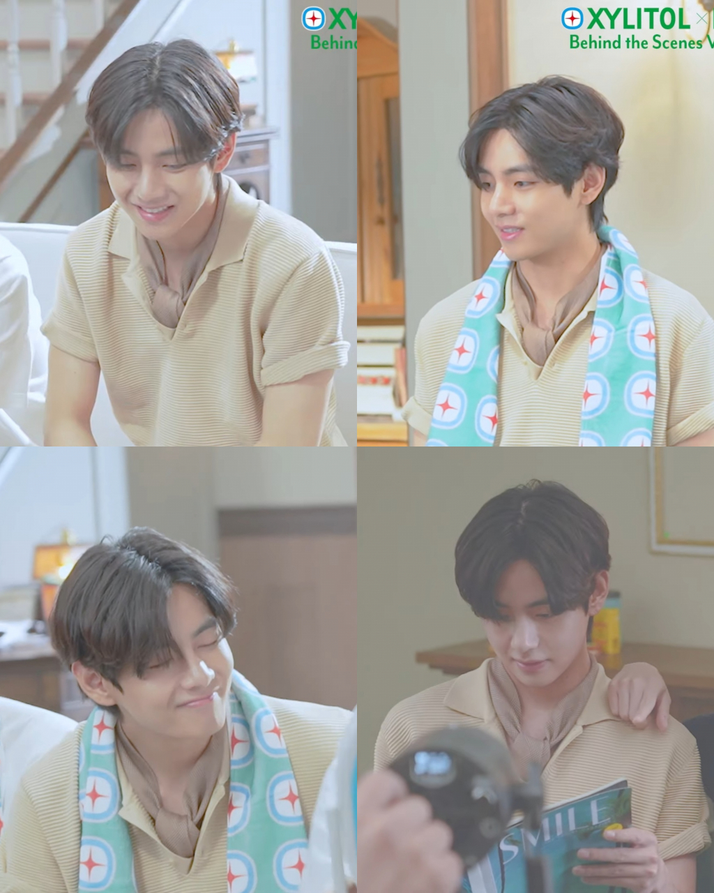 뷔는 멤버들과 대화하고 장난도 치면서 화기애애하게 촬영장 분위기를 이끌어가며 햇살같은 미소와 사랑스러운 모습으로 눈을 뗄 수 없게 했다.