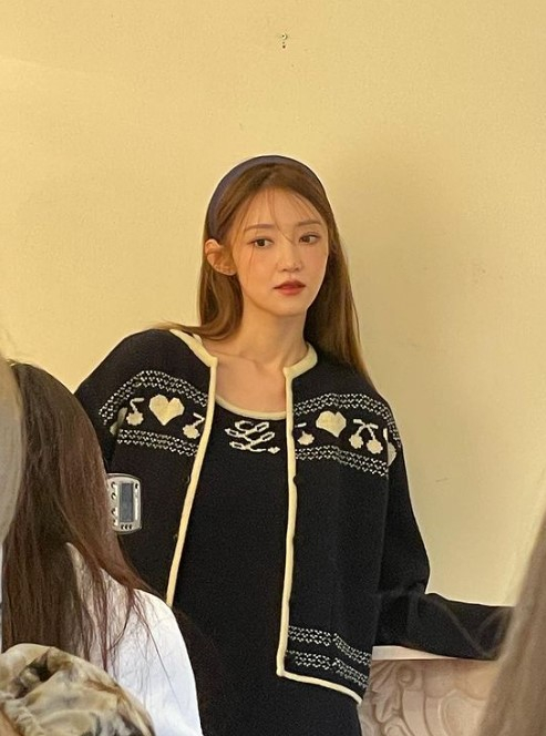 사진에서 서하얀은 다양한 콘셉트의 가을 화보를 촬영하고 있다.