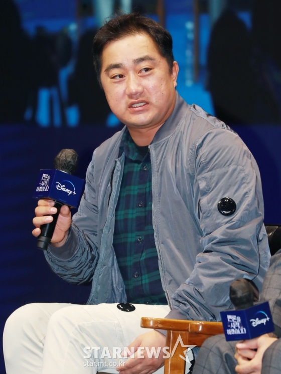 강민구 PD가 21일 오전 서울 중구 웨스틴 조선호텔에서 진행된 디즈니플러스 오리지널 드라마 '변론을 시작하겠습니다' 제작발표회에 참석해 질문에 답하고 있다.