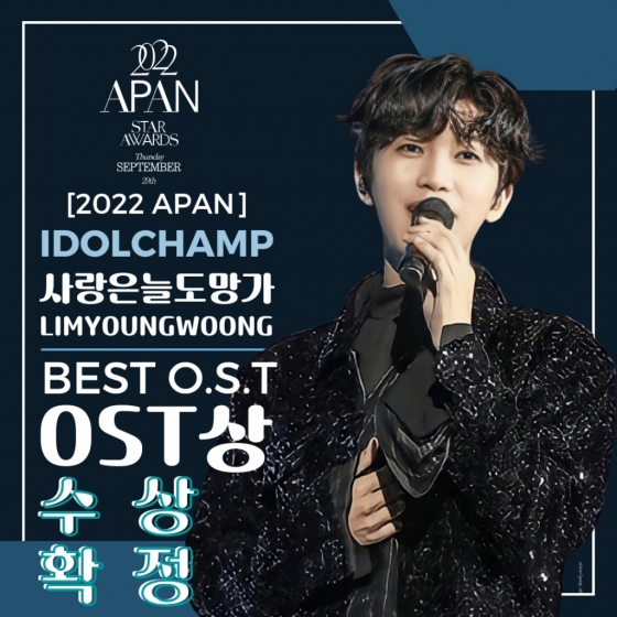 2022 APAN STAR AWARDS OST상은 아이돌챔프 100% 투표로 선정된다. 이에 임영웅은 2022 APAN STAR AWARDS OST상 수상을 확정했다.