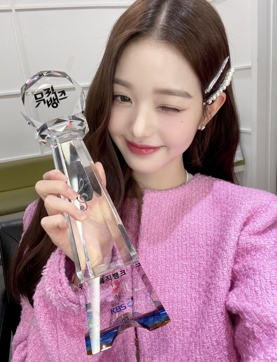 최근 'After LIKE' 활동을 종료한 아이브는 방송 출연 없이도 1위를 차지하며 압도적인 인기를 증명했다. 장원영은 '뮤직뱅크' MC인 만큼 직접 1위 트로피를 수여받았다.
