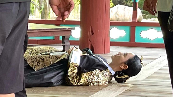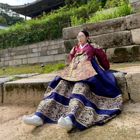 공개된 사진에는 김혜수가 버선발로 있는 모습이 담겼다. 그는 화려한 자수가 있는 궁중 의상을 입고 있다. 또 눈에 이모티콘까지 더해 웃음을 유발한다. 카리스마 넘치는 배우 김혜수 대신 친근함 가득한 김혜수다.