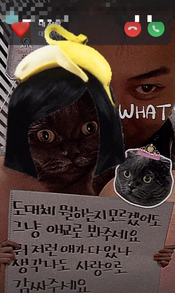 문구에는 "도대체 뭘 하는지 모르겠어도 그냥 애교로 봐주세요. 뭐 저런 애가 다 있나 생각나도 사랑으로 감싸주세요"라고 적혀 있었다. 지드래곤만의 재치 있는 근황이 담긴 셈이다.