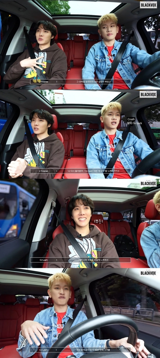 크러쉬는 지난 24일 공식 유튜브 채널을 통해 신개념 드라이브 토크쇼 'BLACKVOX' 1화를 공개했다. 대망의 첫 번째 게스트는 방탄소년단 제이홉이었다.
