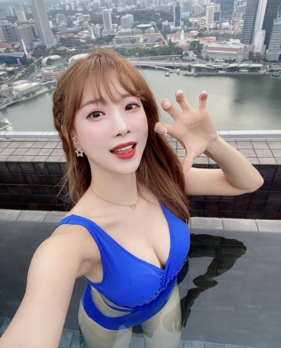 김한나 치어리더는 최근 자신의 인스타그램에 "너무 가보고 싶던 마리나베이샌즈♡ 그리고 올해 첫 물놀이..."라는 글과 함께 싱가포르에 놀러간 사진을 공개했다.