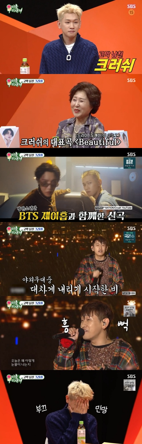 25일 오후 방송된 SBS 예능프로그램 '미운우리새끼'(이하 '미우새')에는 가수 크러쉬가 게스트로 출연했다.