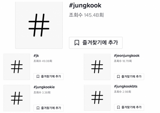 정국은 최근 글로벌 쇼트 비디오 플랫폼 틱톡에서 자신의 고유 명사 개인 해시 태그 '#jungkook' 으로 1450억뷰를 넘어섰다.