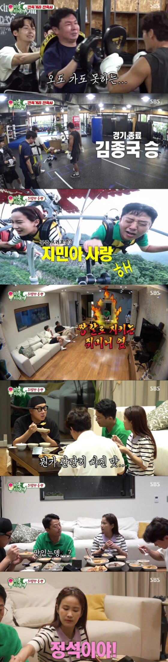 한편 이날 '최고의 1분' 주인공은 김준호, 김지민 커플이 차지했다. 동해 여행길에 나선 김준호, 김지민, 이상민, 허경환은 산 위에서 글라이더를 타는 놀이기구를 체험했다. 안 타겠다고 버티다가 억지로 탄 김준호는 눈을 질끈 감고 공중에서 '지민아, 사랑해'를 외쳐 눈길을 끌었다.