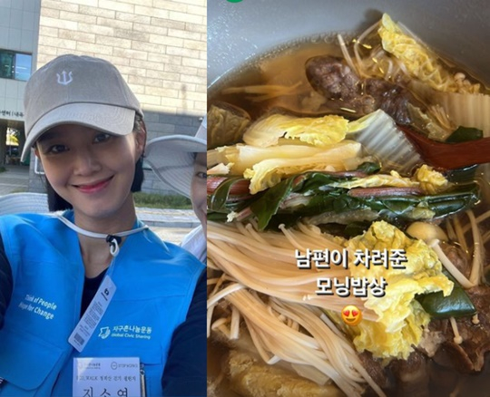 또 다른 사진 속에는 남편인 송재희가 직접 만든 요리도 공개됐다. 지소연은 "남편이 차려준 모닝밥상"이라는 글을 적기도 했다.