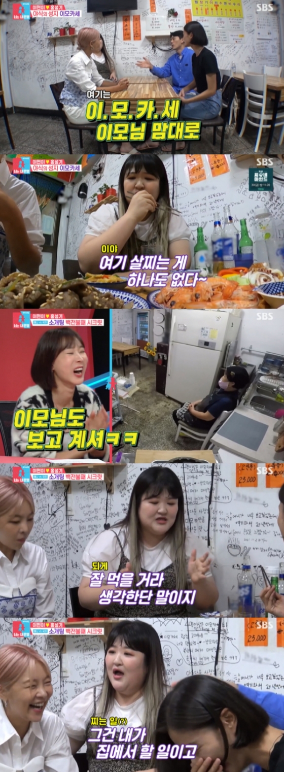이날 식당에 도착한 이현이는 남편 홍성기에 술 잘 먹는 두 명을 불렀다며 이국주, 송해나를 소개했다. 홍성기는 "오늘은 이모님 마음대로 요리해 주는 '이모카세'를 준비했다"고 말해 기대를 자아냈다.