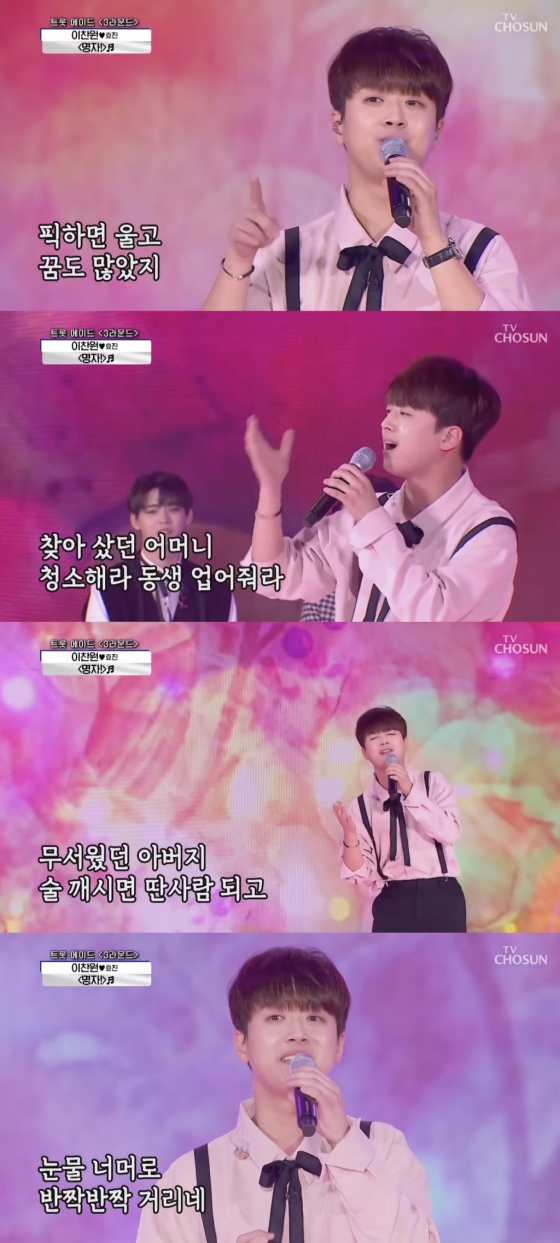 중저음의 목소리와 담백한 읊조림이 가슴 뭉클한 감동을 안긴다. 이찬원의 가창력과 곡 해석 능력이 돋보이는 무대다.