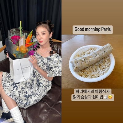 산다라 박은 27일 자신의 인스타그램 스토리에 "파리에서의 아침 식사 닭가슴살과 현미밥. Good morning Paris"라는 문구와 한 장의 사진을 게재했다.