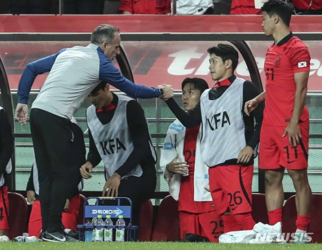 결과적으로 이강인은 이날도 몸만 풀다 경기를 마쳤다. 선발에서 제외된 뒤 후반부터 몸을 풀기는 했지만, 벤투 감독이 활용한 5장의 교체 카드엔 이강인이 없었다. 관중들이 이례적으로 이강인의 이름까지 외쳤는데도 벤투 감독은 아랑곳하지 않았다. 마지막 남은 1장의 교체 카드를 쓰기도 전에 몸을 풀던 대기 선수들을 모두 벤치에 앉혔을 정도였다.