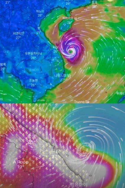 이켠은 28일 자신의 인스타그램 스토리에 "다낭을 직격타로 치고 있는 태풍 노루 점점 심해진다. 공항 폐쇄와 통행금지령 그리고 정전 사태"라는 글을 올렸다.