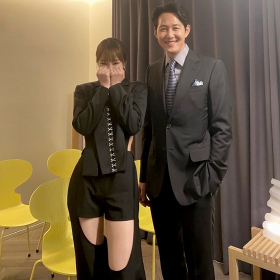 공개된 사진 속 헤이즈는 이정재를 만나 인증샷을 찍고 있다. 환하게 웃으며 미소를 짓고 있는 이정재와 그 옆에서 수줍은 미소를 짓고 있는 헤이즈의 모습이 훈훈함을 안긴다.