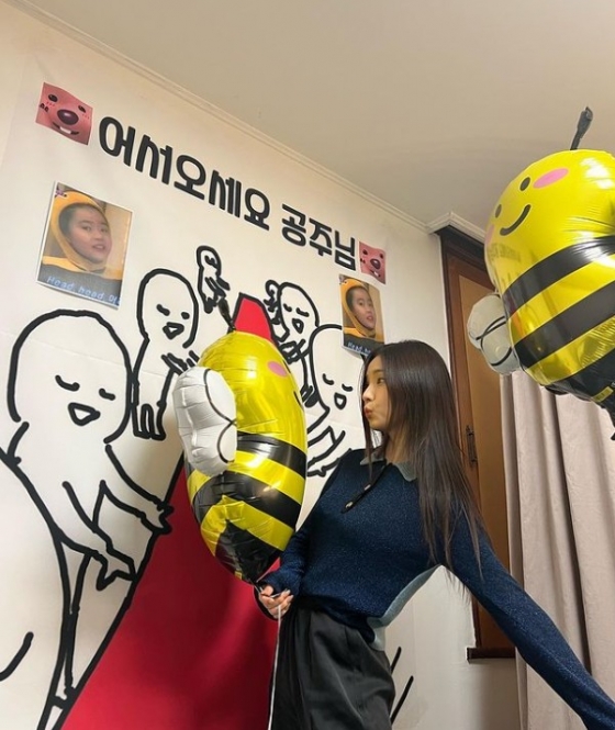 공개된 사진에는 신세경이 아이 같은 표정으로 입을 내민 채 벌 모양의 풍선을 바라보는 모습이 담겼다. 풀어헤친 머리 스타일과 화장기 없는 수수한 모습에도 굴욕 없는 동안 미모를 자랑해 눈길을 끌었다.
