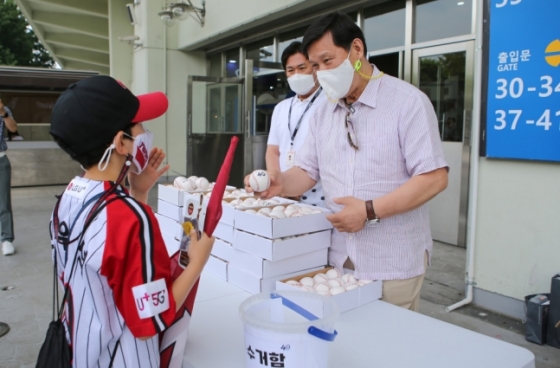 허 총재는 지난 29일에도 잠실 삼성-LG전을 찾아 팬들에게 KBO에서 제작한 기념구를 어린이 팬들에게 직접 나눠주는 이벤트를 진행했다.