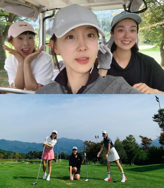 가수 이지혜가 개그우먼 오나미, 이은형과 골프를 친 근황을 공개했다.