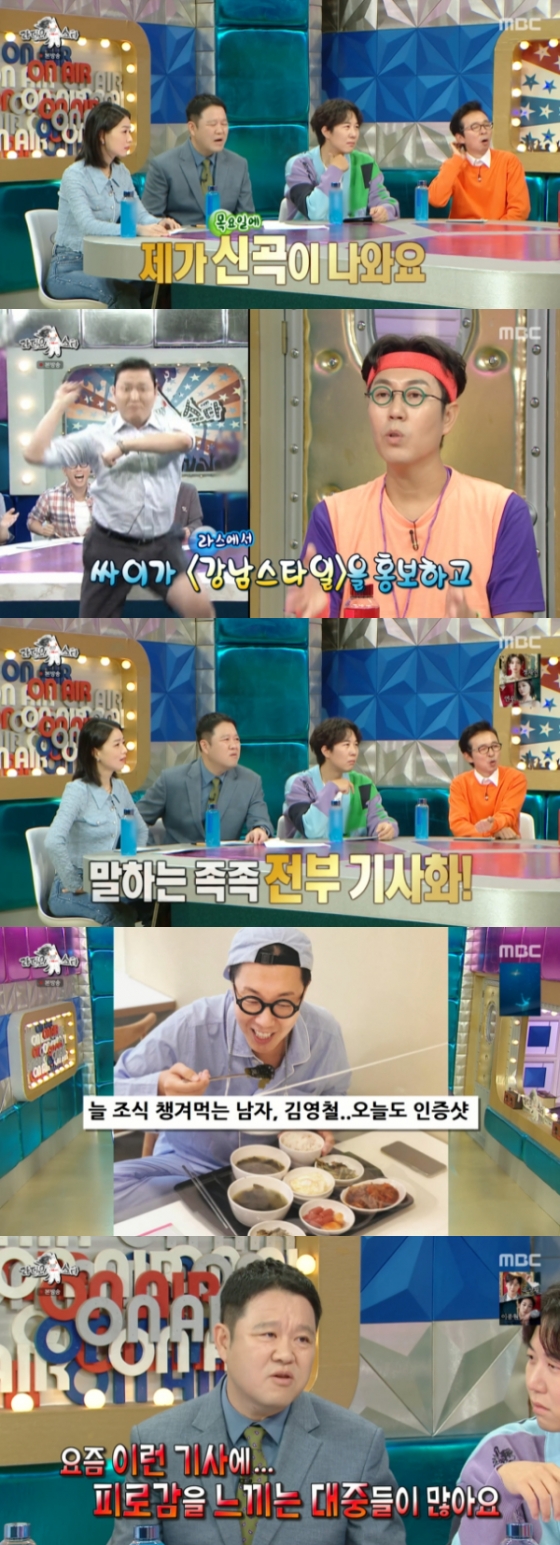이날 김영철은 새로운 앨범이 나온다며 '라스' 출연 이유를 밝혔다. 김영철은 "음원이 곧 나온다. 싸이가 '라스'에서 '강남스타일' 홍보하고 초대박 났다. 그래서 싸이가 음원 나올 때마다 '라스'를 선택하더라"라며 기대했다.