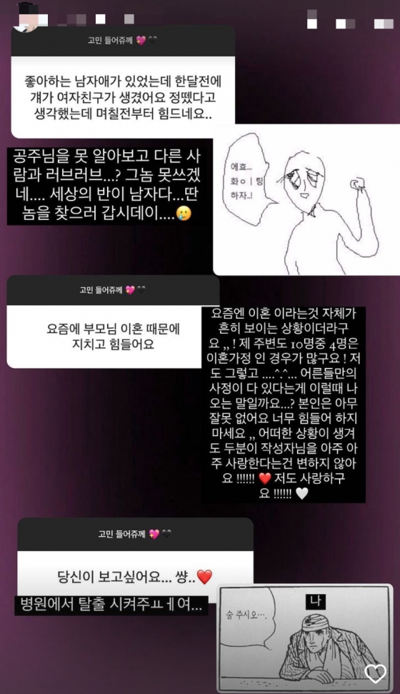 최준희는 한 팬으로부터 "부모님의 이혼 때문에 지치고 힘들다"라는 고민을 들었다.