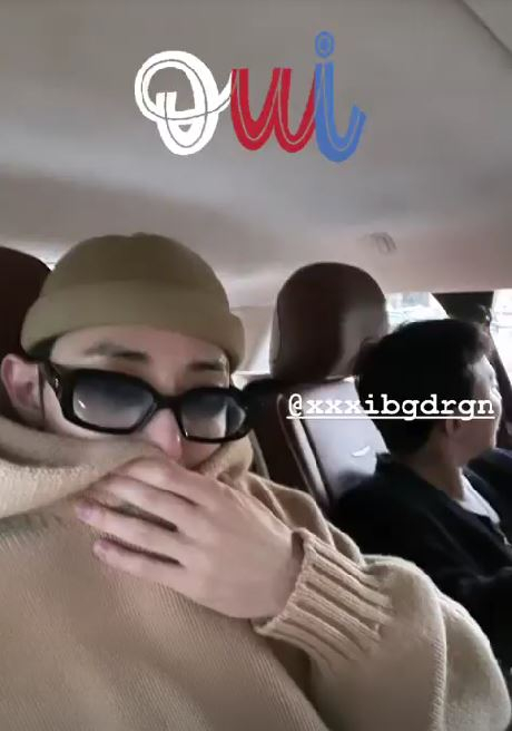 지드래곤은 창밖을 내다보며 프랑스 거리를 감상하는 모습이다. 이수혁은 그의 얼굴에 SNS 계정을 태그하며 남다른 친분을 과시했다.