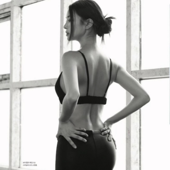 공개된 사진에는 김윤지가 찍은 한 화보가 담겨있다. 브라톱과 숏팬츠, 보디수트 등을 입은 김윤지는 군살없는 몸매를 자랑했다.