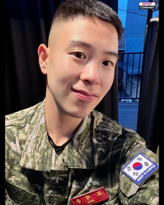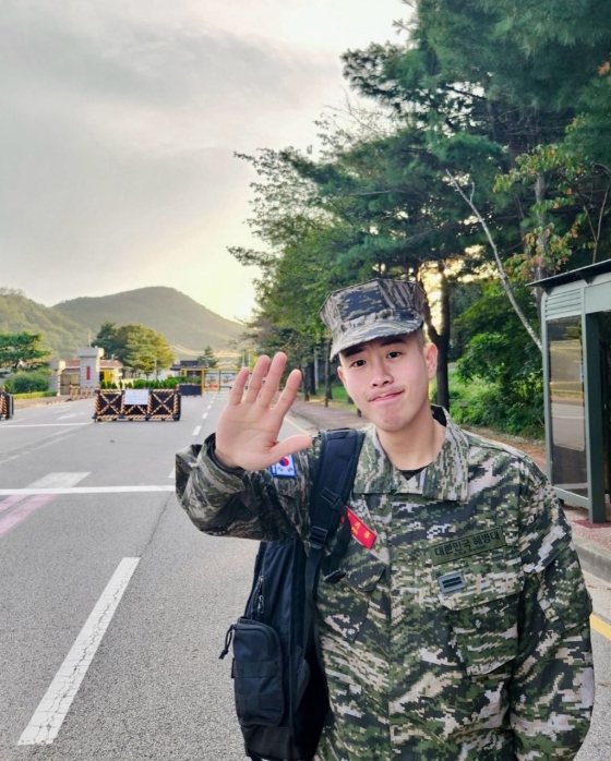 공개된 사진에는 해병대 군복을 입은 채 경례하고 있는 피오의 모습이 담겼다. 제법 늠름한 모습의 피오는 볼살이 쏙 빠진 모습으로 시선을 사로잡았다.
