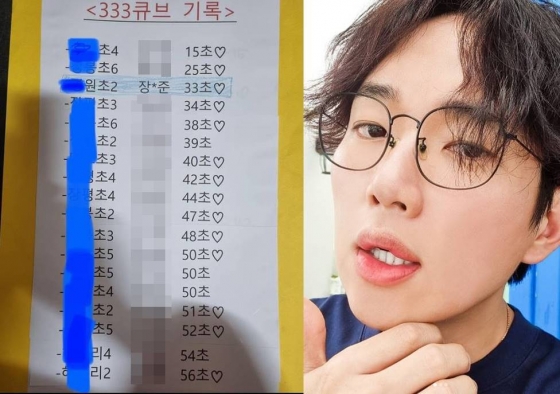 공개된 사진 속에는 장성규의 아들 하군 군이 '큐브 맞추기 기록' 명단에서 세 번째로 빠른 순위에 들어있어 눈길을 끌었다.