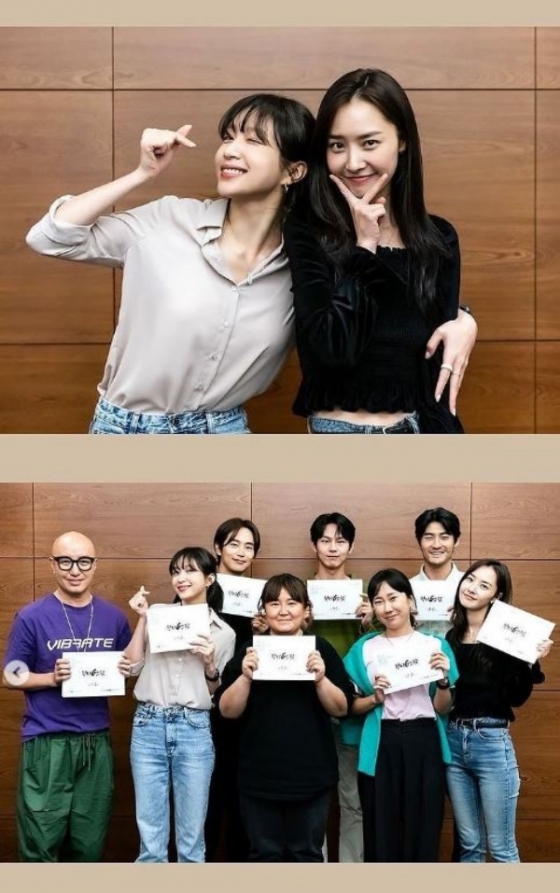 공개된 사진에는 하니가 '판타지스팟'에 출연하는 배우들과 대본을 들고 사진을 찍는 모습이 담겼다. 하니는 셔츠에 손하트를 하며 사랑스러운 매력을 풍겼다.