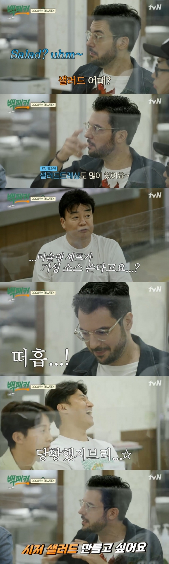 이어 백종원은 "그리고 파브리 왔으니까 샐러드 어떠냐"라며 미슐랭 스타의 요리에 기대감을 표현했다. 하지만 파브리는 "좋다. (시판용) 샐러드드레싱도 (창고에) 많이 있다"라고 대답했다.