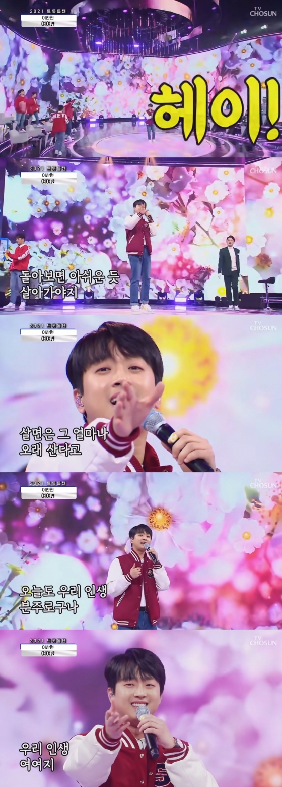 영상에는 TV조선 '사랑의 콜센타'에서 이찬원이 금잔디의 '여여'를 부르는 모습이 담겼다.