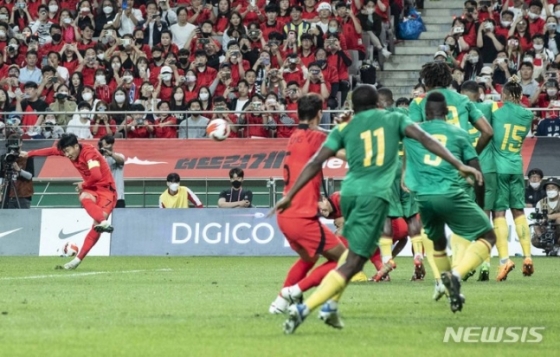 손흥민(30)은 한국 축구 대표팀의 프리킥 공식 키커라고 해도 과언이 아니다. 안토니오 콘테(51) 토트넘 감독이 드디어 고집을 버리고 손흥민을 직접 프리키커로 활용하겠다는 뜻을 밝혔다. 한국 대표팀의 경기를 보고 마음을 바꾼 것이다.