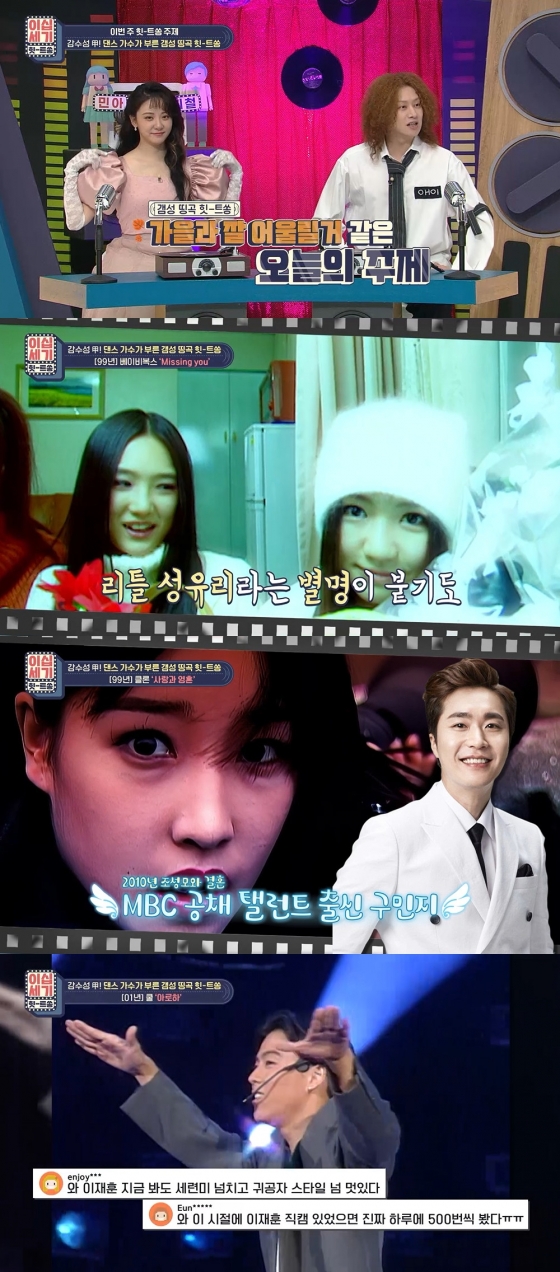 이날 '걸크러쉬의 대명사' 베이비복스는 애틋한 감성으로 'Missing You'를 노래해 주목받는다. 김희철은 뮤직비디오 속 윤은혜의 모습을 보고 "청순의 대명사였다"라고 전해 눈길을 끈다. 윤은혜는 '리틀 성유리'라고 불렸을 정도라는 설명이다.