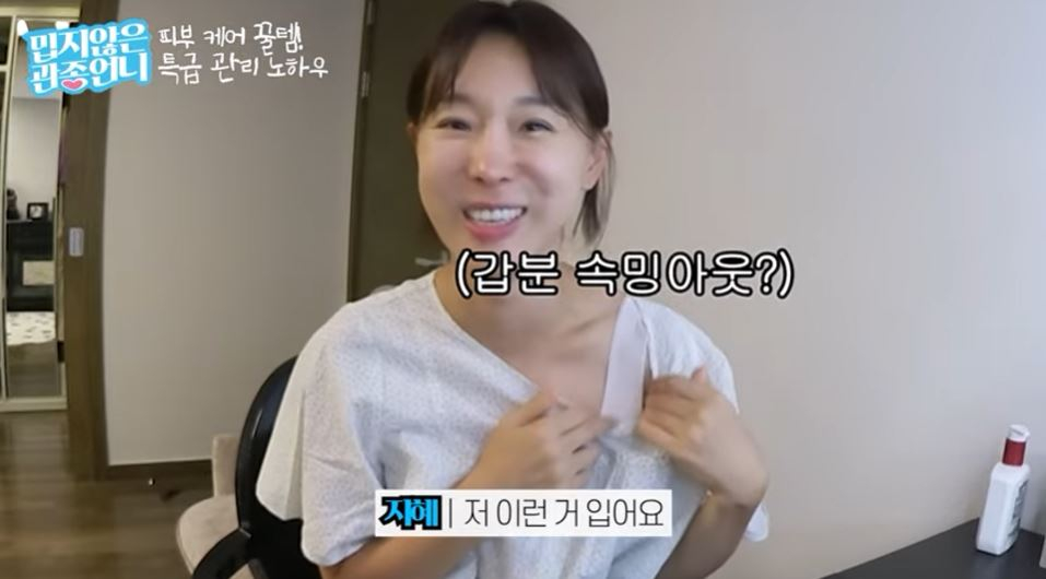 이지혜는 이후 자신의 티셔츠를 들추고 심리스 속옷을 자연스럽게 내비치며 놀라움을 자아냈다.
