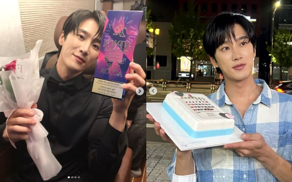 공개된 사진에는 안보현이 검은색 셔츠를 입고 꽃다발과 '2022 에이판 스타어워즈'팜플렛을 들며 수줍게 미소 짓고 있는 모습이 담겼다. 또 다른 사진에는 안보현이 9월 달력 그림의 케이크를 들고 사진을 찍었다.