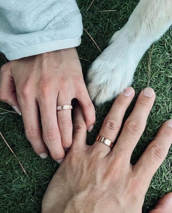 이와 함께 공개된 사진에는 이기우와 그의 비연예인 아내, 반려견 테디가 손을 모은 모습이 담겨 있다. 특히 이기우는 아내와 맞춘 결혼 반지를 공개해 눈길을 끈다.
