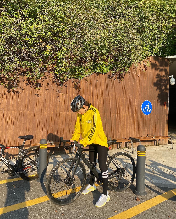 공개된 사진에는 이주연이 자전거에 탄 모습이 담겼다. 그는 노란색 상의에 검은색 레깅스를 착용했다. 특히 가녀린 극세사 각선미가 드러난 레깅스핏이 시선을 끈다. 극세사 다리로 라이딩 하는 모습이 인상적이다.