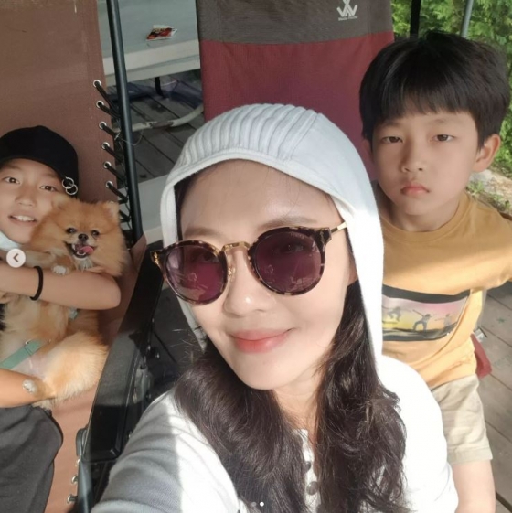 공개된 사진에는 이지현이 딸, 아들, 반려견과 함께 캠핑장을 찾은 모습이 담겨 있다. 이들은 단란한 모습으로 시선을 모은다.