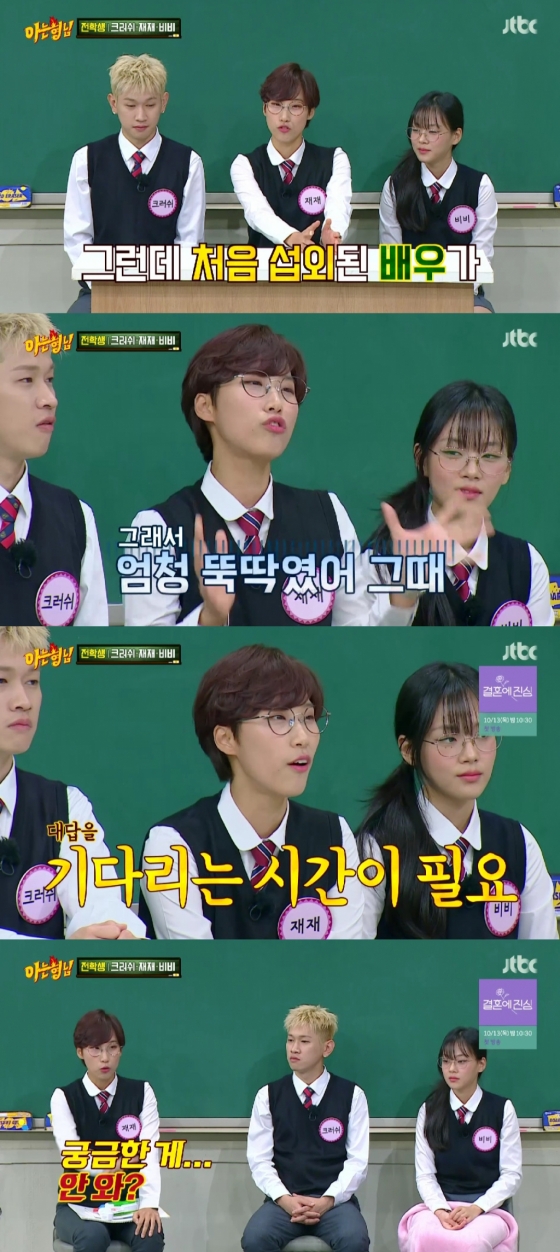 1일 방송된 JTBC 예능프로그램 '아는 형님'에는 크러쉬, 재재, 비비가 전학생으로 등장해 솔직하고 유쾌한 입담을 선보였다.