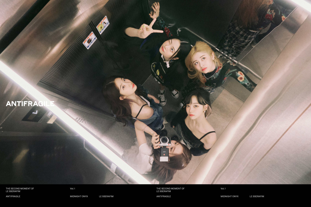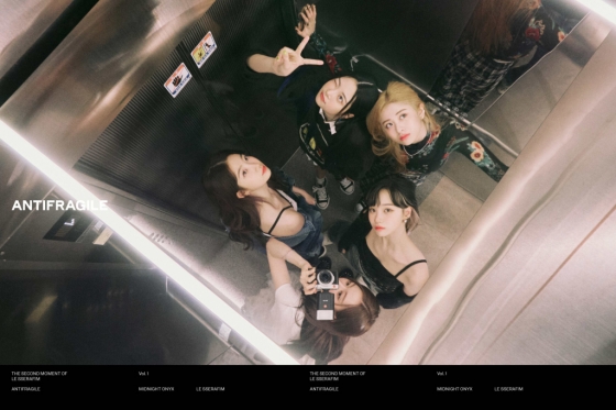르세라핌은 2일 쏘스뮤직과 팀의 공식 SNS에 미니 2집 'ANTIFRAGILE'(안티프래자일)의 세 번째 콘셉트인 'MIDNIGHT ONYX' 버전의 단체, 개인 사진을 게재했다.