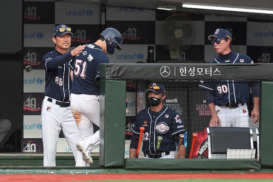 2일 부산 사직야구장에서 열린 롯데 자이언츠와 경기를 앞두고는 악재가 닥쳤다. 팀 내 홈런 1위(23홈런)인 4번타자 김재환이 무릎 통증으로 인해 라인업에서 제외된 것이다. 중심을 잡아줄 선수가 빠지면서 타선의 힘은 더 줄어들었다.