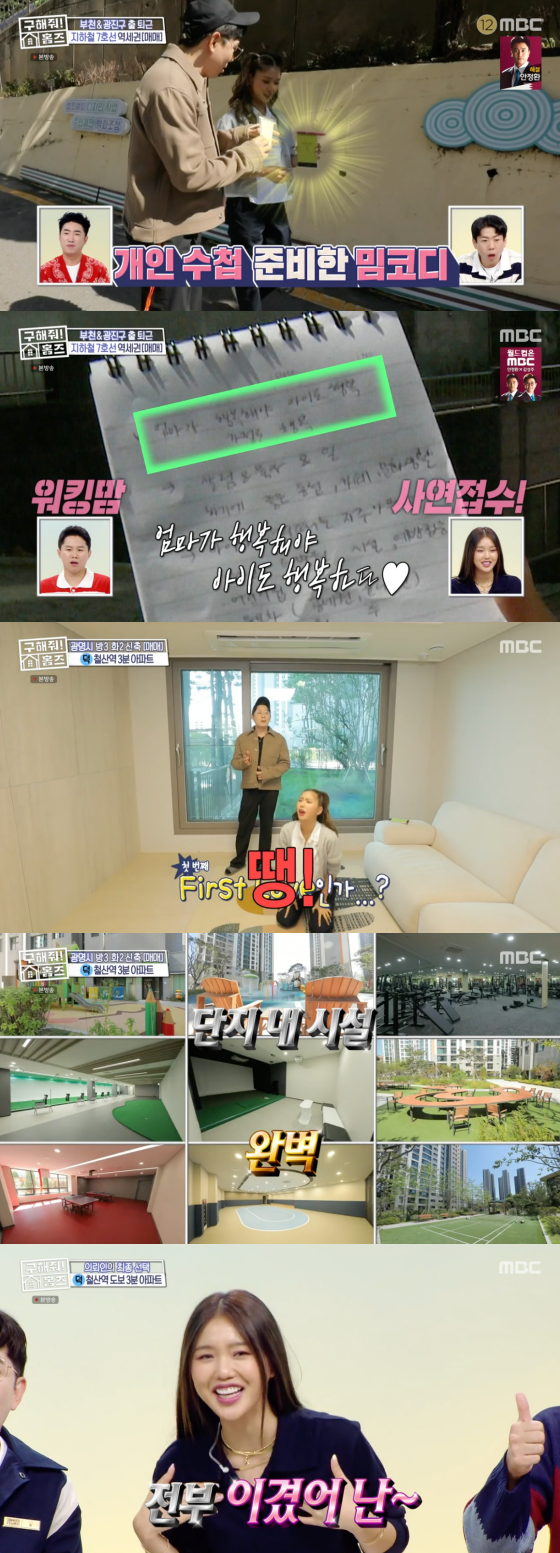 붐은 "미미 잘못 배웠구나"라며 당황했으나 박나래는 "미미 코디님이 야망 있으시네"라며 미소지었다. 미미는 이에 "야망 있다. MC 차려야죠"라며 특유의 엉뚱한 매력을 뽐내 웃음을 더했다. 이 집은 2022년 입주를 시작한 신축 대단지 아파트인데다 단지 내 수많은 커뮤니티 시설을 갖추고 있었다. 또한 층간소음 걱정 없는 1층 매물과 아늑한 정원이 감탄을 더했다.