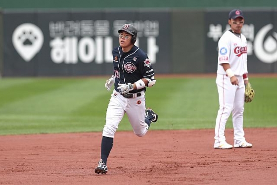 그러자 1990년생 절친인 정수빈도 지지 않았다. 그는 3회초 선두타자로 나와 우익수 앞 안타로 찬스를 만들었다. 다음 타자 강승호의 2루타 때 3루까지 향한 그는 3번 호세 페르난데스의 우익수 방향 적시타 때 홈을 밟아 득점을 올렸다.