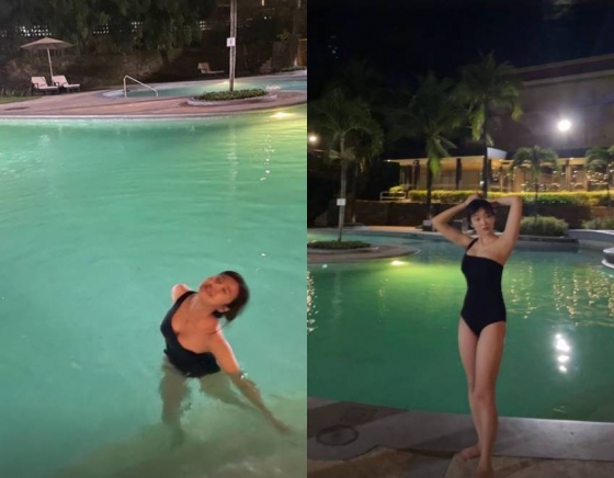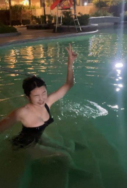 공개된 사진 속에는 옥순이 호텔 수영장에서 원피스 수영복을 입고 신나게 수영하고 있었다.