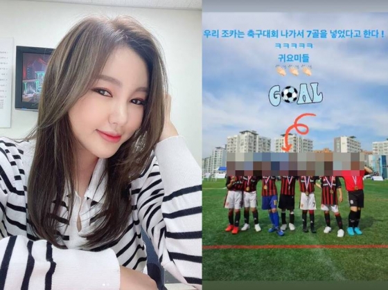 송가인은 2일 자신의 인스타그램 스토리에 "우리 조카는 축구대회 나가서 7골을 넣었다고 한다! 귀요미들"이란 글과 함께 사진을 게재했다.